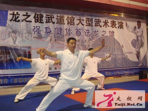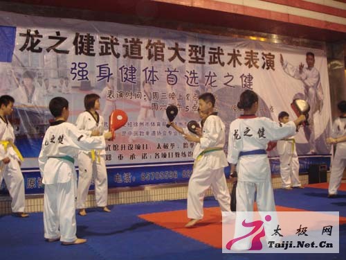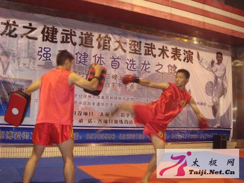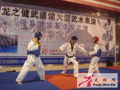 2008年7月5日(周六)的下午和晚上,为迎接29届奥林匹克运动会在北京的召开,龙之健武道馆在徐州市大润发超市门前广场成功地举办了两场武术晚会,分别由龙之健武道馆的教练和学员表演了跆拳道、散打、少儿武术和太极拳。