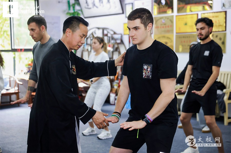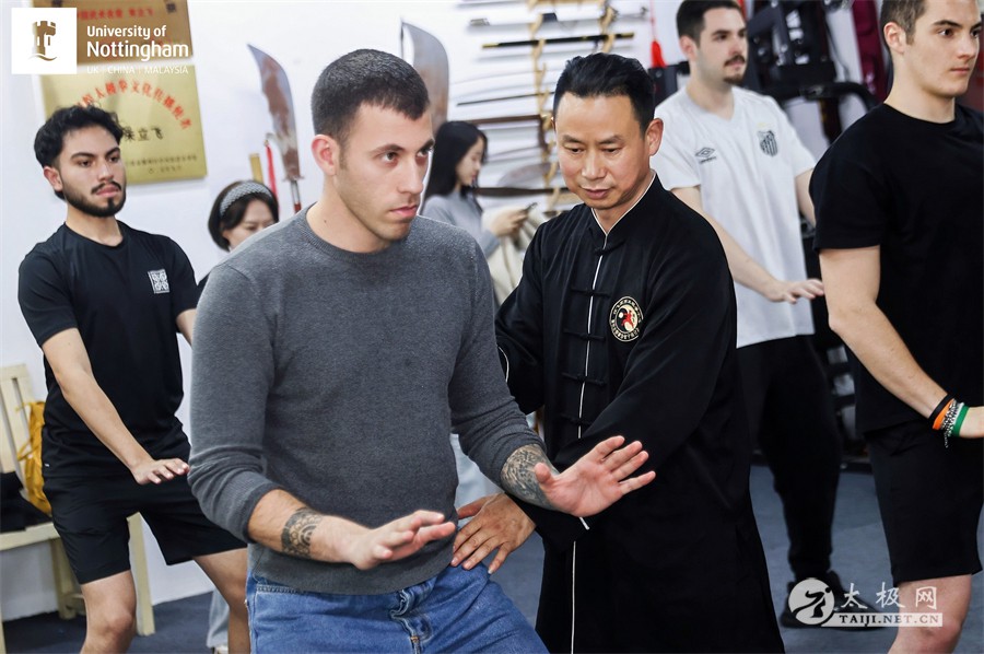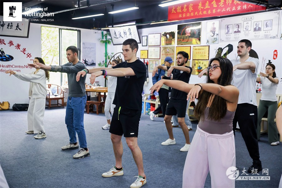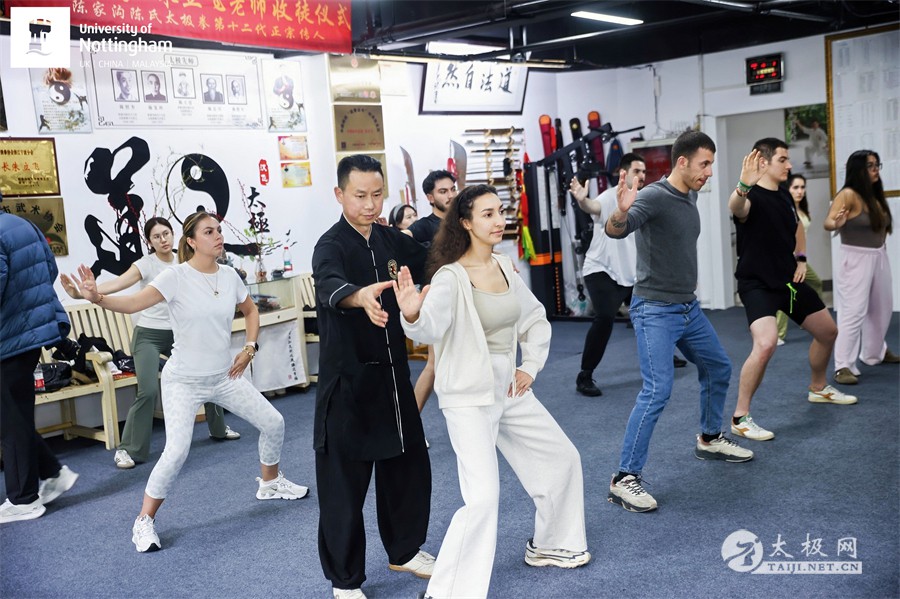 4月15日下午,陈氏太极拳第12代传承人朱立飞老师在宁波诺丁汉大学附近的太极拳馆,为该校国际学生开展太极授课,以拳为媒搭建中外文化交流桥梁。