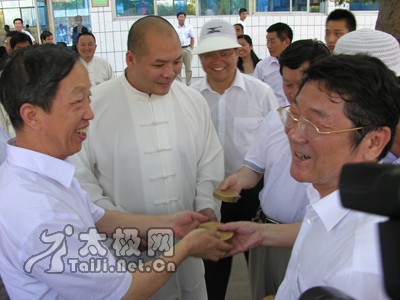 今天下午,河南省教育厅厅长蒋笃运在焦作市委书记路国贤的陪同下,莅临陈家沟武术院调研,就太极拳中专、太极拳文化和太极拳发展与太极拳名家交流,并观看陈家沟武术院学生和陈家沟太极拳“四大天王”陈二虎、王战军、陈冲、张福旺的表演。