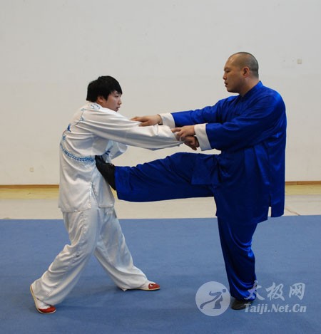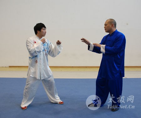 甲(蓝衣)乙双方对峙,甲方用太极之势迎战