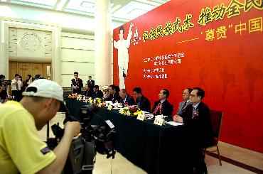 5月18日,“宏扬民族武术,推动全民健身――中国行”新闻发布会在北京人民大会堂举行。此次武术中国行活动,将途径华北、西北、西南、华南等地,内容包括宣扬中华民族武术文化,访问考察武校、武馆、民族体育运动基地,并进行武术表演等相关活动。 |