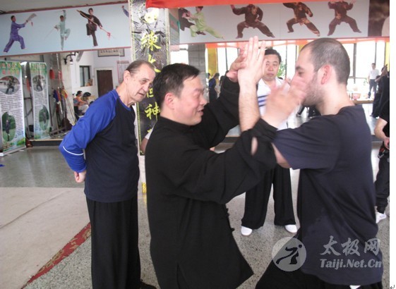 精彩传奇,成就美谈 张东武功夫纯正、技术全面,对陈氏太极拳教学训练及实战技法有独到的见解。俗话说:“人在江湖走,必会遇高手”,这些年在传播武术的过程中难免会遇到太多的精彩瞬间在坊间传为美谈。诸如神功伤恶犬、奇技擒凶顽、力挫国外高手等等传奇林林总总枚不胜举。 先说神功伤恶犬的故事,颇有传奇色彩。事情发生在温县夏季一个月高天黑的夜晚,张东武和几个朋友在外面小聚。常言道:“酒逢知己千杯少”,大家推杯换盏时间过的很快,不经意间已到深夜于是就散了席。大家边走边说,走到一辆面包车旁时,一条高大的狼狗突然一声狂吼扑到人群边,张口向张东武的腿上啃去,大家都被突来的事情惊呆了。张东武突然被外力侵入,本能的内气一沉骤然小腿肌肉绷紧发力,那恶犬本用极大地力气咬下,猛然受到外力相抗,如同啃在石头上一般,受此巨挫的恶犬显然受到了极大惊吓,惊恐之下怆然而退且嗷嗷哀鸣,众人回过神来时打亮手电看去,那恶犬倒在地上浑身瑟瑟发抖,小溺满地,后站起来摇摇晃晃夹尾而逃。大家担心张东武腿被啃伤,挽起裤腿细看,丝毫未伤仅一白点点而已,众人莫不称奇。这让我们想到了练就软如棉硬如铁的太极功夫,不遇外敌则已,如遇外敌骤然发力如迅雷烈风、摧枯拉朽,那恶犬一口咬在硬如铁块的腿上焉能不受惊恐。也正是所谓的挨到何处何处击我也不知玄又玄的神功了。 再说奇技擒凶顽。成名后的张东武常常被人邀请外出授艺,那年被广东茂名市公安局聘请过去做擒拿教练,警察们深为张东武神奇的太极擒拿功夫所折服。这天一个民警急急忙忙跑来请求支援。原来一个抢劫犯在被抓捕过程中,只一个手腕戴了手铐就突然挣脱。然后疯狂的挥舞着手腕上的手铐向周边民警身上扑打,民警一时间难以接近,致使围观的人员越来越多。顽徒的负隅顽抗使民警们想起了他们擒拿教练张东武,张东武随一位民警迅速赶到现场。那个歹徒还在不断的一边狂吼,一边挥舞着腕上的手铐。只见张东武走近顽徒侧部,找了一个空挡飞身而上,右手闪电般向顽徒肋下一点,只见那顽徒象稻草一样身子一软倒在地上近乎昏死;围观群众爆出了暴雨般的掌声,大家啧啧称奇,纷纷说还没看到怎么回事,那歹徒已经倒在地上了。这次奇技擒凶顽的惊险一幕,让那些民警们大开眼界,他们没有想到张老师身法敏捷出手如闪电,一瞬间就把歹徒拿下,为此更为敬服。 三说:国外授课,力挫空手道高手。1998年张东武应邀到法国教学,这已经不是第一次到法国讲学了,热情的学生们对这位功夫高深的中国太极师傅,极为尊重和仰慕。有位女学员很热情地邀请张东武一行到她家里做客,那位学生的丈夫极尽地主之谊,摆下了丰盛的午餐接待了张东武老师。在交谈过程中,得知这位牛高马大的先生,在法国是一位了不起的空手道高手,据翻译说已经拿到了黑带的级别,自己也教了一大帮的学生。并且对软绵绵的太极也提出了他的质疑,感觉太极不具备技击功能,作为艺术和健身还是不错的,也表达了自己想感受一下太极功夫的想法。这种质疑无疑是对中国博大精深的武学的蔑视,看来丰盛的午餐过后是一场“恶仗”再所难免。张东武在心里暗笑:“这顿午餐是法国式的鸿门宴”。 经过翻译在双方之间的相互沟通,东西方两位武师决定进行一场文明的比试。首先张东武让他用力抓住自己的右手,这位法国先生用尽全力抓紧张东武手腕,心想看你能奈我如何,只见张东武轻运手腕一个金丝缠腕,那高大的老外痛的“扑通”一声跪倒地上,满脸表现出了痛苦的表情! 余犹未尽的张东武让这位高大的先生抓住自己的肩膀,这位法国朋友身高近乎1.9米体重200磅俨然一座大山,他伸出两只毛茸茸的大手抓在张东武的两臂上感觉那力量就可以把张东武抓起来。张东武问道:“抓好了没有”,对方回答:“抓好了”,只见张东武双肩骤然一抖,那法国朋友猛然一惊,张东武肩膀向下一松,气发于丹田,向前一近身一个肩靠结结实实打在法国朋友的胸上;一松、一沉、一进、一靠可谓环环相扣一气呵成;只见那牛高马大的法国朋友还没回过神来身子已经不自主向后急退,一屁股坐在地上,两只眼睛愣愣地看着地面出神,口中喃喃的用法语说:“怎么回事,怎么回事,我怎么倒地了,太不可思议了”。神情似乎还没有从刚才的惊魂中回过神来。最后这位空手道高手不得不惊叹中国功夫的高深,并也跟随张东武练起了太极拳。 [page]
