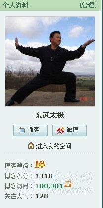 祝贺东武太极研修院张东武老师博客点击率突破10万人次