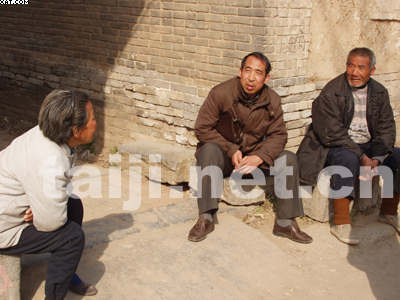 他讲王宗岳教书,和顾留馨、唐豪先生考证的“据王宗岳所著的《阴符枪谱》佚名氏序王宗岳1791年在洛阳、1795年在开封教书为业”的说法吻合,时间上也非常接近。当听到李鹤林的儿子曾在舞阳开盐店时,我忽然想到在太极拳界盛传的武式太极拳创始人武禹襄曾在舞阳县盐店得到一本王宗岳的《太极拳论》一事,遂问李立炳:知道不知道王宗岳《太极拳论》 一书的事。他回答:“不知道”,并说:“村里人只知道王宗岳在这里教书,其它的不知道”。这也难怪,李立炳是个不懂武术的人,据村支书李俊启和村会计李跃进讲:光知道唐村过去练武的人很多, 现在已几十年没人打拳了。