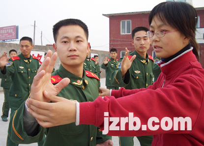 武警焦作市支队沁阳市中队的一批老兵即将退伍,为让他们把太极拳文化带回家乡,连日来,该中队专门请沁阳市体育局的老师教他们打太极拳。瞧,老兵们学起太极拳来多认真。