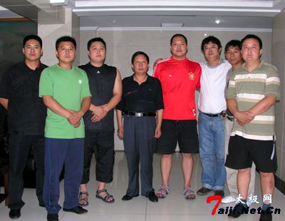 2006年6月作者(左三)在北京相遇温县体育局局长张胜利(右四)、陈家沟“八大天王”之 (右起):陈志强、陈大虎、陈二虎、王二毛、张福旺、陈冲 自80年代以来,在练习陈氏太极拳的过程中,使我经历了风风雨雨。从骨骼和肉体的变化及精神和意识上的改变,使我深感自己的不足和太极拳的博大精深。众所周知,中国人过去抵御匈奴抗击倭寇保护自己的家园和妻子儿女不受侵犯,主要是强烈的民族意识和浓烈的尚武精神。我曾去过日本及东南亚国家,在那里我惊讶的发现百分之四十以上的年轻人都喜爱中国的太极拳。过去的小人国竟然身高平均增长了三公分,使我更加不解的是,我们国家的年轻人还在崇洋媚外,自己祖先留下来这么美好的国粹不去学习,而学习他们的一些皮毛之术。日本的经济和文化都是从中国抄袭的。陈氏太极拳大师王西安先生说中国人永远是东方的主人,将来也必将是世界的主宰。拳师王二毛先生也曾说过要练就一副强壮的身体、精明的头脑、敏捷的思路、强悍的民族意识,重壮我民族带有智慧的彪悍之风。这种强烈的民族意识和高尚的人格魅力震撼着每一个习武之人的心。