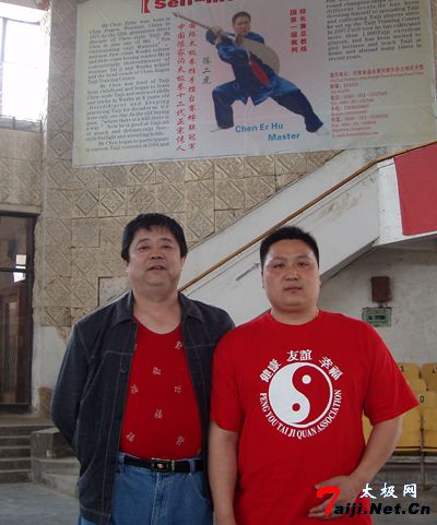 2006年4月拜访王西安大师(左) 当我看到中国温县陈家沟武术院院长王二毛先生练拳时的风采,使我们大家为之震憾,他那强壮的身体、惊天动地般的虎豹雷声、势大力沉的打击力和不可抗拒的发放力,使在场的每一个人都发出惊讶的赞叹声,可想而知,我们国家如果有这样的真正的传统武术家再多一些,何愁不能进入奥运会的神圣殿堂!本人在各地教拳,听到很多风言风雨,有人说陈正雷先生及有些名师练拳练得心脏病,还有的人说练陈氏太极拳得腰腿痛病……。在这里我要说,根据我几十年的练拳经验,练习陈氏太极拳不但可以强壮身体、增强民族意识,而且还可以延年益寿。我查过档案和资料,我发现练习陈氏太极拳的拳师们,平均寿命都在80岁以上,所以在这里,我要敬告那些只练嘴不练拳的人,为一些蝇头小利,而说一些不负责任的话。这样不但害己,也害众人,更有损于国家的形象。更可恨的那些胡编乱造的人,当你们遇到真正强大的对手,或受到攻击的时候,你敢面对吗?中国几千年来深厚的武术底蕴,是靠无数英雄们用鲜血和生命换来的宝贵、珍贵的遗产,我们应该珍惜它、保护它,更不能随意的去篡改它、践踏它,现在的习武之人能赶上前辈们已经是不容易了,更何况要超越他们是何等的艰辛,要得武术髓,首由站桩起。一个武术家和练武之人,如果不懂得真正的传承和五行,往大了说,金木水火土,往小了说,心肝脾肺肾,如果不能相凝聚,不能受到真气的保护,哪来的丹田鼓荡和打击力,更不用说开带脉。一个人兜里没钱,你用什么去花钱,练功夫就象农民种地一样,春天你不用心去呵护它,那么秋天就没有丰硕的果实。拳术是一门超越科学,形而上的东西。它不论你的年龄、身高、体重,只要你按照真正的传承去锻炼,它就有神奇的、不可思议的奇异的效果,过去有的前辈身高不足1.6米,体重不过百斤,他们所发出的神力是惊人的,本人亲眼所见:一匹2岁大小的马被他瞬间击倒,这样的例子很多;王二毛先生在与日本450斤体重的相扑运动高手相对持时,被他瞬间放倒,真是扬眉吐气。