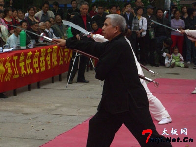 表演者:王松林;第二届全运会武术全能冠军,现年62岁 4月的杭州春光明媚,阳光和煦。在吴山顶上的伍公庙前一场以追忆武学大师刘百川先生的武学研究、演武表演活动隆重举行。全省各地的刘百川先生后辈们数百人集聚一堂回顾了先辈武学精神,并以60多个精彩的武术节目表演告诉大家,刘氏功夫仍在延续.... 据刘百川武学专业组提供的资料介绍:刘百川1870年4月14日生于安徽六安县十里勾、1900年在上海精武门任教,1916年在上海英租界用子母鸳鸯腿击败英国大力士康泰尔,威震四方,孙中山先生当年在场,亲书“尚武精神”横匾一额,嘉惠他为中华民族争气的壮举。1924年投身革命,任黄浦军校国术教官,1926年任蒋介石侍卫教官,(少将衔)1929年配合李景林筹办在杭州市举办的全国国术比武大会,并为大会题词“强种导师”。会后又会同众武术家创建了浙江国术馆并出任教务长。 刘师一生习武,是我国著名的武林怪杰之一,人称江南一腿、赛活猴、千斤刘。“身灵步活、腿法突出、连环刚猛”是他的武功主要特色。他的外家功夫在当时国内首屈一指,而内家功夫也同样十分了得,独立创编了“刘式太极拳”;和付剑秋、孙禄堂合创了三意拳;与杨澄浦合创了八式太极拳。另外他源自嫡传的骨科技术在武术界也堪称一绝,刘师的一生给后人留下了很多传奇的故事。 刘师一生“学子三千、桃李遍天下”,他在杭的弟子有:白振东、何长海、邵文明、王志华、蒋玉堃、蒋慧娴、陈天申、孙中宣、陈邦达、肖忠义、高小毛、周云中等;在外的弟子有:万籁声、朱润身、郑怀贤等。 刘师逝世于1964年,享年九十四岁。 |