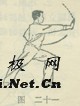 十五、青龙腾转(云手转体) [预备] 两手开立比肩稍宽,两手下垂。 [动作] 1,左拳抱于腰间,右手成立掌向左方推出,左脚尖向左转,上体向左转(图二十一)。 2,左拳变掌,向左伸出,右手也由立掌变为掌心向下随后使两臂沿上、右、前下方向绕环至左侧,左手仍收回抱于腰间,右手仍立掌(图二十二)。绕环时,上体与两臂活动方向一致,连续转两圈。 3,右手收回抱于腰间,左手改立掌向右方推出,右脚尖向右转,上体向右转,做与2动作相同、方向相反的动作。每呼吸一次,两臂轮转一次,动作要慢,眼看两手,两腿直立,膝部勿屈。 [作用] 青龙腾转属于腰背功,对锻炼腹肌、腰背肌很有效,且对肩关节也有良好作用。前者是肩带的环转运动,后者是肩部的外展、内旋活动,都能增强腰背肩臂以及臀部肌肉力量,防治这些部位软组织劳损酸痛。做动作时配合好呼吸,还能提高呼吸器官的功能。
