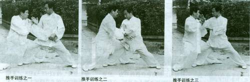 | ——太极拳武术属性研究之二 蒋家骏 太极拳打手是太极拳实践的攻防运用。太极拳与其他的武术手段一样,其武功的掌握都要经过实践的训练与应用,方能真正将功夫学到手,其技击方法,如踢、打、拿、跌、摔等的训练,在无护具的情况下伤害性极大。在各种拳术中,练功的方法尽管不同,但均以肢体的击打为手段,去攻击对方,取得技击上的胜利。按力的反作用的原理,你打击对方,也等于对方撞击你。因此,每易导致两败俱伤。只是受伤的轻重程度有所不同而已。 ![]() 说太极拳推手不易造成损伤,那只是太极拳功夫“柔”的一面,其前提条件必是推手双方已把太极拳功夫中最关键的粘连粘随、不丢不顶确已练到了身上,在时间、角度方向的配合上做到了恰到好处,无过不及,这样才能够很巧妙地控制好力度和技巧,且能轻重随意,发放自如。然能达到这种境界的太极拳高手确是少之又少,对于功力不深者,每每不易掌握好分寸,在推手的实践中难免会出现不同程度的损伤,这则是太极拳“刚”的一面。 然而在现实生活中,确实还存在着第三种情况,就是两个根本不懂太极拳的人却在进行太极拳推手。说白了那只是牛羊相抵,不外乎有力打无力,手慢让手快罢了。这种事实上存在的不良现象正是人们对太极拳的普遍存在的误区之一。这还不算是最重要的,因为这多多少少也让人们了解到太极拳毕竟是性属武术,有技击的功效。听起来似乎很是差强人意,但有总比没有的强。更可悲的是,太极拳已被一些对太极拳武术的属性缺乏认识的人定格为一一只不过是老年人练的养生保健操,是活动筋骨的游戏而已。继而,许多人不仅瞧不起太极拳,还对中青年的太极拳学习者,加以白眼和嘲讽,表现出极大的不理解,“你怎么也练这个,如摸鱼的一样?!”言下之意,不仅太极拳可鄙,连练太极拳的人,也跟着可鄙了。 由于太极拳是武术文练,重在内劲的锻炼,一般人只见现象,不明太极拳的本质,就以为它不是武术,还由于世间真有太极拳功夫的人不多,不能随时随处地都见到太极拳在发挥武术的威力。且有了功夫的,大都较有涵养,每每深藏不露,而只喜作学术上的研究了。所以目前知道太极拳可以上擂台竞技的,为数不多,很多人是抱怀疑态度。倘说太极拳是非常凶猛厉害的拳术,恐怕很多人像听神话,会笑落牙齿了。 近百年来,由于对“详推用意终何在?益寿延年不老春”之说存在着过分主观片面的理解,造成长达几十年的时间里,人们大都认为太极拳的作用仅是疗病保健,只适宜老年人练习,绝口不谈它的武术属性。加之国家有关部门对太极拳技击性的认识和提倡缺乏力度,致使太极拳的技击功效长期得不到人们的重视。这种“决定意识”的存在,又怎么能责怪那些不懂太极拳的人们呢?可喜的是,近20年来,国家已经认识到这个问题,并且大力提倡开展太极拳推手的实践与竞赛。自1983年以来,每年都有一次“全国太极拳推手锦标赛”,在很大程度上推动了太极拳技击的实践与发展。随着太极拳推手的日益普及,太极拳的本来面目——武术属性,定将逐渐被人们所认识和重视。 为阐明太极拳的武术属性,彻底改变人们目前对太极拳的看法,消除种种误识,我们不能不从陈王庭、陈长兴、杨露禅等诸前辈说起。 陈王庭创造的陈氏太极拳打手的方法,以缠绕粘随为中心内容,练习视觉、听觉、皮肤触觉和内体的感觉的灵敏性,吸收综合了踢、打、拿、跌等竞技技巧,而又有所发展变化。譬如擒拿诸法,它不限于专拿人的反筋骨,而是着重拿人的劲路,随势而用。这就比一般的擒拿法的技巧高。陈氏这种打手方法,在当初,其技击、斗争性是很强的,且在技击上也是很全面的,因此对发展体力、耐力、速度、灵敏和技巧都具有相当大的价值。同时由于踢法中的伤害性较大,后来只采用了跌法中的“衬、套”的管脚法。 自陈王庭之后,陈氏后人世代研习太极拳,名手辈出,代不乏人。 陈氏十四世陈长兴(177l一1853),字云亭。自幼随父秉旺习练太极拳、械,功夫炉火纯青,独步当时。以保镖为业,在冀鲁一带,享有盛名,被称为“牌位大王”(意即平日练拳、行走、站立,都是立身中正,不偏不倚)。无论是看戏、赶会、站立于人群之中,任凭众人如何拥挤,他总纹丝不动。凡近身者,如水触石,不抗自颓。他勇于打破门规局限,将陈氏家传的太极拳外传于河北永年的杨福魁(露禅),此为太极拳后来大发展大普及的重要之举。 杨福魁(1799—1871),字露禅,河北永年人。学拳于陈长兴,勤学苦练20余年,深得长兴公的真传。后经亲友推荐到北京授拳,打败许多名手,震动京师武林,被誉为“杨无敌”。后到清官王府授拳,门人弟子日益增多,得其真传者有万春、凌山、全佑等人。 武河清,字禹襄(1812—1880),河北永年人。当杨露禅于壮年自陈家沟返永年,寄居于太和堂药号,授拳自给。禹襄兄弟二人深爱露禅拳技,遂从问业。禹襄既有得于杨露禅,复拟访露禅之师陈长兴求益。1852年禹襄赴兄澄清舞阳县任所,便道去陈家沟,途径赵保镇,知长兴公己老病,时陈清萍于赵堡教拳,遂改从清萍学技,始知长兴公所传者为陈氏老架,清萍传者为新架;学习月余,通其理法。 武澄清于舞阳盐店得王宗岳太级拳谱,禹襄见之,更有发悟,遂发挥王氏旧谱之义成《打手要言》、《十三势行功心解》各—‘篇,又归纳太极拳修炼要领为《身法十要》。武禹襄拳式紧小,