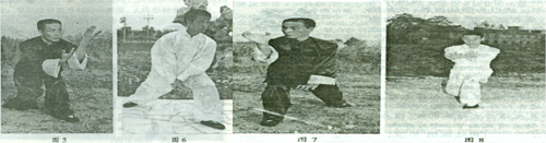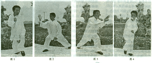 | 心拳十二大势为心意六合门重要的十二把劲力的盘法。必须在六艺的基础上方可盘习,每一大势内必含六艺内涵。现据南阳张志诚一脉谱传心拳七世陈合龙、水氏家传心意拳水普慈、唐百仪一脉丁正喜等恩师所传及本人练功浅见,整理出十二势的定法盘法,望习者在定法中盘出随心所欲之内劲,方不失其真谛。不到之处,望心意(形意)同门及武林方家指正。 (一)截 手 一、盘 法 承“熊出洞”式,右脚在前左脚在后,重心在左脚。前脚内扣15度为虚,利于变化,后脚实。前脚向前踩出一小步,或向左向右均可,踩出时行步如犁。前手在胸前转拧翻裹向内划圆,掌心向上后转,或掌心向下,掌指向前扑出,有提催、撞、攒、沉、接、采、搓、领之劲。起手时两手五指叉开,除拇指外其余四指端微内扣,掌心含空。此掌可使全手贯气,指尖生力,形成气贯四梢之意。出手时以意引气,从下丹田到中丹田经肩井穴至肘曲池穴达劳宫穴,意到气到力到,身手灵活多变。前手向前上方拧、裹、攒、搓、截出时,肘裹劲。拳经云:“起横不见横,落顺不见顺,起攒落翻,顺起顺落,参以领搓者为之截手”。内含领;带、搓、截、裹、翻、攒、扑、捋、沉的复合劲。 承上式。上后脚过前脚,同时转拧裹身,起后手从下向上翻、搓、领、带、扑、攒出,手心向上变翻,或向前下方扑、按、捋、搓、截而出,双手臂相摩。上步时腰要摩,下部脚胫相摩。脚出向前,踩时转移重心至前脚,后脚虚。上步的同时意引气从下丹田至胯的环跳穴,经膝阳陵泉穴到达脚的涌泉穴,这样下部骨节开,气盈力足,下部有力,步法疾快整灵。前肩随时向前拧,胸腰内含,头要顶劲,颈竖,下颏内收,三尖相照。眼随手起,起手时目上视,有熊观天非观天之意。手下时,目视前下方,有鹰从下而上视之意。此即拳经所云:“熊观天非观天,鹰视地非视地”。上步时身手步三位一体,同时裹、转、拧、翻而出,三尖要照。上步可左右前后退,或走之字、三角、八字、十字、八卦等,来回盘练全任自己心意而变,次数多少全在于自己变化,可配六艺、十形或其它十一势变化而变化,也可为一单把,或为一套路,或变成一个十字把等。收式用鹰捉、虎扑、雷声(图1—4)。