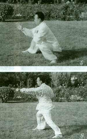 “掩手肱捶”是太极拳中重要的拳法之一,在陈式一路太极拳中出现4次,陈式二路太极拳中出现6次,在 两趟拳前后重复了10次,充分说明了它的重要性和实用性o “掩手肱捶”的发劲有一个非常显著的特点就是“通背劲”。它在发劲时右拳向前击打,左手向后回挂肘部后击,左肘的劲点与右手的劲点同时到位,使左手的力量通过肩背完全输送到右手的劲点上。发劲时身体下沉,重心在右腿上,左脚五趾扒、抓、扣,右脚五趾蹬地向上反弹,扣膝、松胯,拧腰左转,以手领劲,使劲力从脊背顺达于右拳。当劲点到达右手的同时,重心通过裆下走弧从右腿移于左腿。图1是“掩手肱捶”发劲前的蓄式,图2是太极拳家张鹏先生演练的“掩手肱捶”发劲的瞬间,我们可清楚地从他的衣服所自然形成的波浪状褶皱上领会这种刚猛的整体劲力。 做好“掩手肱捶”这个动作,应注意以下几点: (1)左手在上右手在下交叉回挂、击出;如果双手不交叉,则身体中线敞开门户,对手可乘隙而人攻击o (2)右拳不是直线向前撞击,而是在身体节节贯通下发出的螺旋穿透力带动下击出。 (3)把握好击出的劲点,以防对方在变化中缩短击打距离后发不出力o (4)发劲后身体不能前倾,否则就会脚下无根,一旦对手闪避或引带,自己就会因站立不稳而向前栽倒。 (5)发劲前全身处于放松状态,发劲的瞬间肌肉高度紧张,发劲后迅速放松。 总之,“掩手肱捶”的发劲要有“一动无有不动”的协调性,要求打前击后用好通背劲,并保持好自身的平衡。 |