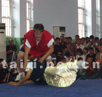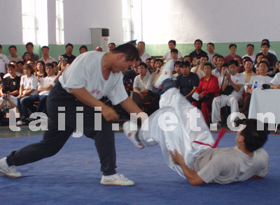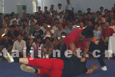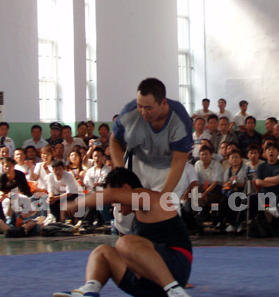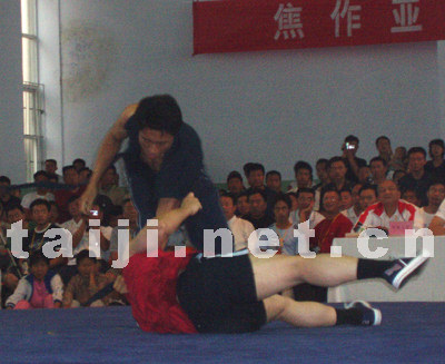 经过3天的激烈角逐,太极推手比赛8月24日下午揭晓。陈家沟武术院的王伟伟和石冬冬、江苏庆州的范正寇、陈家沟武术院的王二卫和王亮、华盛武院的王峰、河南队的郭明启、温县太极拳武校的张海涛分获男子A组52Kg、56 Kg、60 Kg、65 Kg、70 Kg、75 Kg、80 Kg、80 Kg以上级别比赛第一名,黑龙江武协的刘腾心、原亮和张鹏、江苏常州的桂进华、加拿大基宏太极拳学院的理查德•安德森、江苏庆州的王国营、陈家沟武术院的李天金、温县太极拳武校的刘小胖分获男子B组52 Kg、56 Kg、60 Kg、65 Kg、70 Kg、75 Kg、80 Kg、80 Kg以上级别比赛第一名,天津武协二队的董大水、韩国的吴彰基、深圳军利的冯军利、山西一队的库旭峰、江苏徐州的姜启建、湖南衡阳的吕垒分获男子C组60 Kg、65 Kg、70 Kg、75 Kg、80 Kg、80 Kg以上级别比赛第一名,陈家沟的郭阳阳、李莉芳、台北彰化的许民儒分获女子A组55 Kg、60 Kg、60 Kg以上级别比赛第一名,重庆万州的苏娟荣获女子B组60Kg级别比赛第一名,江苏庆州的王子凤荣获女子C组60Kg以上级别比赛第一名。