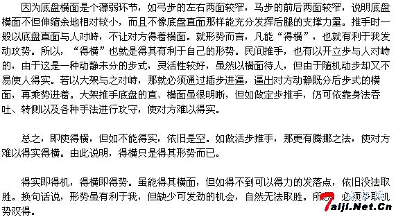 | 得横,就是得着对方底盘的横面。任何人在推手运动中摆开步式站立时,他的底盘总是有较宽和较窄的一面。大家不妨站着试一试,如果摆出一个底盘呈四方形的开立步,那种近似立正的步型,在推手运动中一般是用不上的。 所以,从原则上说,实际应用于推手中的任何步法所形成的底盘,都有其较窄的一面。当底盘的窄面受到攻击时,人体的重垂线就容易越出底盘而发生倾跌。现在再用火柴盒来举例:把一盒火柴竖在桌面上,如果用手指轻轻地推它底盘较宽一面的中部,就不容易推倒,如果你推它底盘较窄的一面的同一部位,那就一碰即倒。 这较窄的一面,就是“横面”,简称为“横”。得横,就是要善于进攻对方底盘的横面。横面,有左右或前后两面,据情攻击其中一面或两面,这样一般远较攻击底盘较宽的直面容易取胜。但如攻击两面,由于在推手运动中不允许用拳、掌夹击伤人,因此,只能是两手相继连续用推按等法,或引左击右,或引前击后,使之失重。若用两手同时得其前后两个横面,那必须错开位置,也即应用挒法。反之,如不错开位置,那就反而帮助对方稳定了重心。 ![]() 例如,当用手指轻轻推动直立的火柴盒,如果你把推的部位放在它横面的下部,一般只会使火柴盒发生移动而不会跌倒;如果推它横面左右两侧的边缘,即使用力稍大些,也只能使它发生转侧现象。人体运动远比静物复杂,机势瞬息万变,唯有机势并得,才能取胜。你如没有机会发落到人家的实处,就像你的前面虽有个靶子,但由于种种原因打不到靶子上去,那这个靶子正对着你的大好形势,依然得不到可利用的机会。 所以,必须做到机势并得,这样发必应弦。反之,在不得机势的情况下,就不宜妄动击发,而只能是通过引动、变化,以等待和创造机势的到来,然后战而胜之。 |
