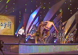 10月15日,在河南卫视《武林风》最新一期风云争霸赛中,山东菏泽洪式太极拳选手朱效振战胜对手连胜两轮,进入三选一,这也是该栏目举办90多期来参赛的为数不多的太极选手闯入前三名。 河南电视台《武林风》栏目主办的风云争霸赛,以“汇集四方英雄,弘扬中华武魂”为主旨,是一档百姓擂台赛。在9月25日举办的预赛(又称“海选”)中,山东菏泽洪式太极拳推广中心选派的选手朱效振、阎西牛力挫群雄,从全国470名武林高手中脱莹而出,预赛时朱效振合理运用太极拳的技法1分半钟将对手摔到5次,阎西牛仅用了30秒即将对手KO! 在10月15日这期比赛中,12名英雄闪亮登场,开始了淘汰赛。第一轮中朱效振不畏对手人高马大,顽强拼搏,并4次将对方摔到,顺利胜出;第二轮比赛开始前,节目主持人进行了赛前煽情,朱效振自信地说我可以胜出,比赛伊始,双方不相上下,在第二回合中朱效振接住了对方的一个前蹬腿并将对手掀落台下;紧接着对方发起了猛攻,效振避开对方的重拳贴近对手并将其摔倒,体现了太极拳近身靠摔的技法,连续获得二轮的胜利。难得可贵的是,朱效振在两轮比赛中当将对手摔到时并没有向其他选手那样连续击打倒地的一方,体现了太极人的风度。