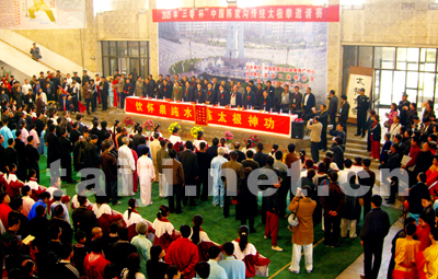 | “第一次来圣地陈家沟参加交流赛,不仅见到神往的太极拳圣地,捧了两枚金牌,而且拜了名师,长了拳技,收获太多了,以后类似的活动不仅多参加,而且我打算明年放下生意来陈家沟住上几个月,跟名师系统学习原汁原味的太极拳。”参加完2005年中国陈家沟太极拳邀请赛要返程了,谈及此次比赛的收获,来自南京市的业余太极拳爱好者陈玉勇先生说出了海内外太极拳爱好者共同的心声-- 太极故里,我们满载而归 ——2005年“三零杯”中国陈家沟传统太极拳邀请赛掠影