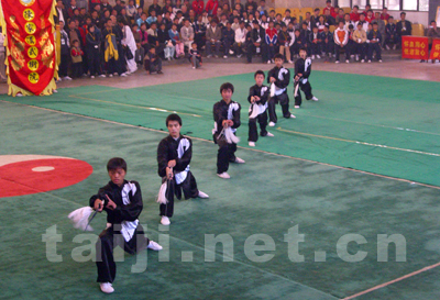 由于赛程紧张,这次比赛开幕式一改以往冗长的太极拳套路表演和过多花哨内容,力求简单、明快和可观赏性,分别由温县陈家沟武术院和温县形真武馆表演了《太极英豪》《东方雄狮》,为赛事助兴。在豪放的音乐声中,身着太极图案服装的英俊少年纷纷表演了太极拳套路、太极剑、鞭等,将太极功夫的飘逸洒脱、刚柔相济演绎得淋漓尽致。而形真武馆表演的《东方雄狮》则在闪展腾挪间展示了太极真功夫。随后,大赛组委会主任、温县县委副书记刘同旺向远道而来的各位太极拳爱好者致欢迎词。9点30分,在激昂的旋律中,比赛正式开始。