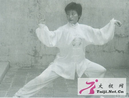 编前语:顾青演练的太极拳,举止之间似乎都具有一种空灵的、充满活力的神韵,多方面透达着她高洁的性情。我想,这应是她多年来全力追寻诚真而获得的超诣,以及她由禅学而来的审美趣味恰当地体现在自己的拳法之中,并在演练时达到了这一表现的极致。 本文是她近日在深圳结束“禅七”,净化心灵后的新作。此文所谈的松肩法,处处为初学太极而不得门径者着想,就教与学而言,都将大有裨益。 太极拳的精粹就是一个“松”字。所以练太极拳应从松功人手,松有不同的层次,本文介绍的方法.可为太极拳初学者提供入门参学。 太极拳要求的松是周身的松.因松而后出掤劲。对初学者来说,采用分部式练习法,会有一个良好的练习效果。由此从松肩人手,是一个切实的问题。人们在长期的生活、_丁作中,往往在不知不觉中养成了用力和对抗的习惯,久而久之形成了一种僵力和拙劲。而这正是练太极拳的大忌,练太极就是要以此人手,练习松柔.消掉这些同有的僵劲。本人从长期的练习和实践中总结出以下几种方法,对初学或久练未能松肩者会有帮助,正确练习可达事半功倍之效。 一、静功法 太极拳是一个练意的运动,静功法是先静意。再由意带动作,这个原则是贯彻始终的。此式全身的要求与太极拳的无极桩相同,双脚平展与肩平,肩、胯与足外踝呈一直线,唯手臂自然下垂,两肩后平展、微沉且对拉开,两掌心斜相对,收视内听,自然呼吸,意想周身松,站10至15分钟。 二、倒挂法 接上式,两臂舒展由体侧缓慢上举至头顶,注意两臂不要用力,仅腰部用力下弯,两臂随之自然下垂.两眼平视前方,弓身成90度,头仰,意想大椎与尾间成一直线。用腰带动,荡双臂前、后、左、右及划圆各20次。注意周身不要用力,尤其双肩,唯腰部成一动点。由其带动双臂,不要弯膝,双腿伸直。有高血压及眼压者做此动作须慎重或咨询医生。 三、旋肩法 双腿横开比肩宽,腿伸直,腰下弯,脊柱尽量成垂直,头部要松弛,意想大椎与尾闾成一线垂直于地面。两手呈抱球状,由腰催动,以右肩为起点,引领上身及双肩同时顺时针划圆弧5次,逆时针以左肩引领划圆5次。此动作幅度大,注意肩颈松弛,不要用力,随腰转。有高血压、高眼压、脊椎病及眩晕者做此动作须慎重或咨询医生。 四、拍击法 1.两腿略开窄于肩,收尾闾,微屈膝,以腰际为轴左右旋转。左旋时将左臂伸直以右手拍打左肩,反之亦然。注意以腰带动,旋转时不要拧膝,甩头,腰部以下勿动,勿昂头。 2.站姿同上,唯旋转时两臂亦同时左右甩动,像两条鞭子般拍打身体各部位,由颈、肩、胸到腰。注意两臂甩动的力量是由腰际带动而起,非转动肩膀而出,勿昂头。 站姿同静功法,双手握拳在腰侧,向斜上60度方向直线快速冲拳,左右单式练习各5次。此式要求松肩、肘,出拳快速,像弹簧一样弹出,收回。注意用肩、肘、拳的整体一线,非单纯用肘力。 六、隔位法 当人想某部位放松时,会有越想越紧的感觉,这时用隔位冥想法,会有意想不到的效果。例如,用升降桩松肩时,不想肩井穴,而想肘部的曲池穴,肩部自然会放松。以此类推,灵活运用,收效显著。 七、甩肩法 站姿与静功同,以肩头侧为动点.以腰部催动后甩手臂划正、反立圆。要先慢后快,周身其它部位不用力,仅以腰部催动后,用其惯力在体侧划立圆。先左后右、先正后反地交替练习各10次。 八、松抖法 太极拳运动贵在坚持和恒心,方法亦是重要的入门基础。经实践证明,这些方法如正确地坚持练习,在短期内可达明显松肩效果。效果可体现在做太极起式时,双臂如卷帘般轻松自如。 作者简介:顾青自幼习武,屡访太极拳名家与民间武术高人,积累大量武术知识和经验。香港太极研究会创办人及会长,国家一级武术裁判。现居香港授拳。