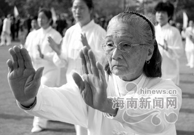 每天清晨,在海口市的万绿园、人民公园等地,都能见到一群老人在舒缓的音乐声中习练太极。太极拳运动已成为我省全民健身运动的独特一景,目前全省有5万人练太极拳。