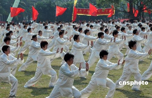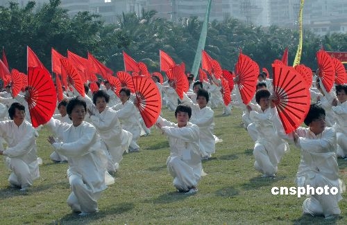第二届世界太极拳健康大会十二月十八日在海口开幕。太极拳是目前世界体育健身活动参与者最广的项目。本次大会共吸引世界十个国家的一千九百多名运动员参赛。