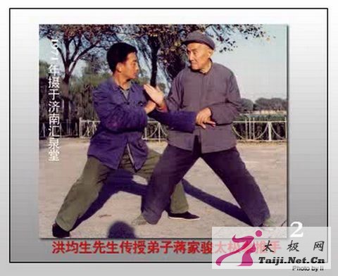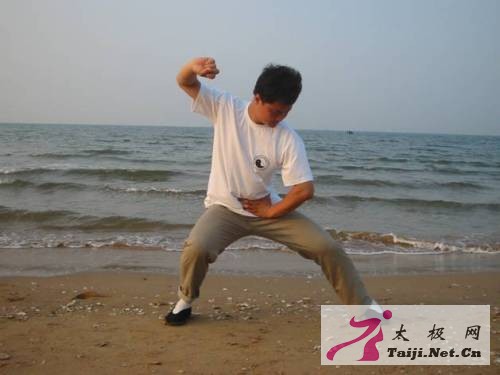 第一势 金刚捣碓 势名考释:金刚捣碓一势,取义为象形之类。势中最末一动作以左手仰作石臼,右手握捶下捣,如古代农家舂米之状,使人顾名思义,学后难忘。金刚原系佛门护法力士,加此二字,美化名字,更便记忆。亦可证明张三丰创太极拳的说法不实。因道家创拳,决不能用佛语命名。其他流派太极拳均无此名。 要领:陈式太极拳一路共4个金刚捣碓,而动作连接不同。第一势共7个动作。眼法以正前方为主。身法左、右、左、右、左凡五转。步法从自然步变小正马步,右小盘步,左前虚步,左扑步,右侧马步,左大盘步,右前虚步,左独立步,成小正马步。手法包括前掤、引掤,进左步右双采,左挤右按,左转身化拿,右膝打裆,震脚等法。 歌诀:捣碓着法变无穷,掤采挤按学用精。马弓盘虚步十变,顺逆缠丝如游龙。 第二势 揽擦衣 势名考释:此势是说明作用的。陈式原名揽擦衣。洪师因它的着法是从右外侧接手。截拦来劲,发劲迅速轻灵,擦衣而发,不是将对方揽在怀中的,故改为拦擦衣。 有人以戚继光拳经为据,妄改陈式原名为懒扎衣,于陈式理法不合。而且戚氏图像为右手高举,眼向左视,左手撩衣于后,与陈式揽擦衣势不同,故不采用。 陈式太极拳一路共4个揽擦衣,二路(炮捶)只有1个。 要领:此势共5个动作。眼法以右前方为主。身法左、右、左、右、左凡五转。前两个动作的步法仍为上势金刚捣碓的小正马步,只是由于身体左右旋转,而变换腿部缠法,并未变步型;从第三动作起才变为右扑步,右侧马步,而成右弓蹬步。手法包括右下掤,右小采,右进步靠、肘、按、挤等法。当年我学此势时,系左手按于左腰,现今习陈式新架者,左手多合在腹前左侧,洪师改为合在心口前。歌诀:揽擦衣先右下掤,右采左按进靠攻。随势肘按螺旋挤,体松气顺神要凝。 第三势 六封四闭 势名考释:此势是说明动作的。封是封制对方的着法,使之无隙进攻;闭是关闭自己的门户,做到防守紧严。六封四闭就是既要保全自已,又要严防对方,便于进攻。当然这种要求,不只限于这一个势子。在陈式太极拳各种着法中,都含有这两层意义和作用。 陈式老架第一路(十三势)无此名,其他几路则有此名,108势太极长拳中也有此名。陈鑫先生所著《陈式太极拳图说》也无此名,但曾说搂膝拗步亦可名六封四闭。一个手足斜开的大敞门势子,反以封闭为名,意更深远。各势太极拳仍有“如封似闭”势名,与此势毫无相同。 当今陈式一路有6个六封四闭,二路(炮捶)只有1个。 陈式太极拳老架一路(头套)虽无六封四闭之名,但在揽擦衣与单鞭连接之处有掤捋挤按的动作练法,今命名为“六封四闭”。 要领:此势共5个动作,眼法以右前方为主。身法左、右、左、右、右凡五转。步法从右弓步变右侧马步。右扑步。成左后虚步。手法包括掤、采、捋、按等法。 据洪均生先生讲,陈发科师爷教此势时总说:捋时左手贴腰向里缠,右手松肩沉肘下塌外碾,而且捋的姿势是用右腕掌之间搭在对方的左肘关节外上侧。说必须这样四两拨千斤中的“拨”方能有作用。从来不许以右手托对方的左肘,认为手总托不动对方肘部下沉的劲。但如今一般习此势却都左手逆缠,高齐左眼,而且以右手托对方的左肘,不知从何时何人变的。 歌诀:六封四闭捋采变,顺势左捋塌外碾。上引下松随敌意,跟步双按闭中封。 第四势 单鞭 势名考释:此势是象形的,势子完成时两手左右展开,如同横担一条鞭似的。陈式一路有7个单鞭,二路(炮捶)只有1个。陈鑫先生在所著《陈式太极拳图说》中说:“左转身蹬一根一势也名为中单鞭,并说明作用为手脚齐用法。“今已无人知晓。各式太极拳名均相同。 要领:此势共有5个动作。眼法在一、二两动作注视右前方。从第二动作完成,便转向左前方。身法右、左、中、左、右凡五转、步法从左后虚步,变左前虚步,左小扑步,左侧马步,成左弓蹬步。手法包括右引左按,左引右挤,左进步靠、左肘、左按、挤等法。 陈鑫先生讲解此势作用,右臂含有臂折靠法。 歌诀:单鞭一势最为雄,一字长蛇互西东。右挤左化左步靠,肘打按挤法更巧。 第五势 左转身金刚捣碓 势名考释:与第一势金刚捣碓同。但洪师加“左转身”三字,以别方向,使学者更为明确此势练法不同处。 要领:此势共6个动作。眼法以左前方为主,转身后方向不变,即为正前方。身法左、右、左、左、右、左凡六转。步法从单鞭末动作的左弓蹬步变左半盘步,左扑步,左大盘步,右前虚步,左独立步,成小正马步。手法包括左前掤、右收掤左转身掤、抱缠、膝打、震脚等法。 此势与第一金刚捣碓不同之处,从势的结构观察,便可看:前者是从两手下垂,两足并立的合势变开势,又变为合势的。此势则是从手足同开的单鞭变为合势的。前势是正面接手,对方的手、步均在我手、步里侧;此势则是对方从我左手外侧进攻,手足始终在我左外方的。 歌诀:左转捣碓先引掤,转身化拿兼膝攻。妙在有形似无形,抱捶震脚势沉雄。 [page]  第六势 白鹅亮翅 势名考释:此势是象形的。取名重在“亮翅”二字,使人一见此名,便可领悟它是讲手部的开,而不是合,与腿无关。陈式老谱所载命名为“白鹅亮翅”。白鹅亮翅一名,老谱释为“鹅”性凶狠,又有温善之态,故名。 各式太极拳均为白鹤亮翅,我依老谱所载。 要领:此势在陈式太极拳一路中共有3个。势名虽同,而练法、作用不同。 此势共3个动作。眼