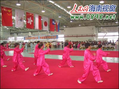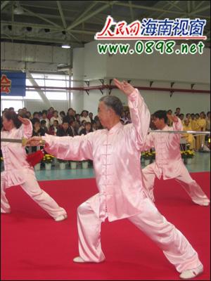 太极拳表演 为期三天的“中华龙”第二届世界太极拳健康大会昨晚在海口闭幕。来自11个国家和地区167支队伍的近2000名太极拳爱好者依依惜别。