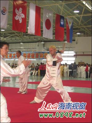本届大会的比赛分为个人和集体两类,顺利完成了68个项目、近40000项次的竞赛,共产生了128个一等奖。其中个人项目占118个,集体项目占10个。国外的选手成为大会一道亮丽的风景线,他们穿上太极拳服装,演练起套路丝毫不含糊,许多人都取得优异成绩。俄罗斯莫斯科王林太极学校的王林一套杨式刀,以8.75分数赢得了一奖奖;古巴武术联合协会的伍斯塔夫、埃尔兰,分别以8.7、8.8的分数摘取了一等奖。此外,还有日本中野区太极拳协会的中村富子、菲律宾武术协会的吴素华、张鸿玉、印尼爪哇、巴厘太极拳协会泗水分会的张莱英等都获得了一等奖,据了解,国外选手获一等奖不下二十位之多,大多来自古巴、日本、菲律宾、加拿大、印度尼西亚、俄罗斯、柬埔寨等国家。 |