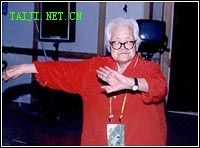 知道老人要过寿,全国武术协会、省市武术协会早几天都发来了贺电。而昨天一大早,谁也没招呼,各地的徒子徒孙一百多人都自发来给大师祝寿,包括广东、咸阳等地陈式太极弟子都派代表参加,还有一位上海的王先生一下火车就赶到大师家里。拄着拐棍的老太太不停在给来拜寿的徒子徒孙们指点招数。徒弟送大师的一条幅“法乾坤正道、研太极神功”,正是一代太极宗师陈立清先生的写照。