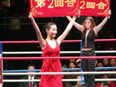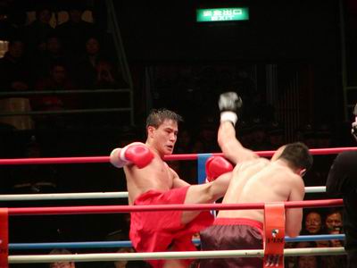 (记者 田勇)北京时间今天晚上,世界散打王争霸赛在北京工人体育馆进行,最终美国的世界自由搏击高手们不敌中国武术散打王,柳海龙、宝力高等武林高手以4:0干净利索的战胜对手,取得绝对的胜利,金光闪闪的“世界散打王”金腰带挂在了中国武术高手们的身上,而中国武术再一次向世界展现了自己所独具的魅力。 ![]() 参加本次比赛的中方参赛选手是大家非常熟悉的超级散打王、世界散打冠军、重量级选手柳海龙和中国散打王、中泰对抗赛金腰带获得者、中量级选手宝力高以及轻量级选手散打新星韩玉柱,美方选手为埃德瓦多-弗吉哈诺、大卫-马瑞罗伯、弗雷兰多-卡勒罗斯和均是世界自由搏击金腰带获得者。 首先进行的是女子垫赛,虽然来自美国的摩根史密斯曾获美国的世界散打冠军,而中国出场的吴钞来仅仅是19岁的小将,但事实上吴钞来今年世界锦标赛的冠军,水平绝对在对手之上。果不其然,在同交手的三个回合当中,史密斯明显不适应中国武术的腿功和摔功,虽然身高占有明显优势,但在吴钞来凌厉的攻势下丝毫没有招架之功,仅第一回合就被摔倒在地上四次,从而很快的以0-4败下阵来。 ![]() 作为散打王争霸赛的最大黑马,绰号“临风玉树”的中国选手韩玉柱的对手是卡勒雷斯。韩玉柱的身高明显占据优势,但力量却出于下风。不过从打法上看,韩玉柱明显要灵活多变,在第一回合的比赛中,双方明显只是互相试探,并未擦出真正的火花。但第二回合一开始,韩玉柱就以凌厉的腿法让对手领教了他的厉害,明显占据了场上的优势。在后三个回合中,韩玉柱又改变了策略,却并未一味以身高臂长的优势采取游击战,却反其道而行之,频频采用以抱摔等武术技巧,这令得卡勒雷斯明显摸不着头脑。当五个回合比赛结束后,主持人沙桐宣布所有裁判一致认定韩玉柱以5-0战胜对手,获得轻量级世界散打冠军称号。 中量级的比赛美国派出的是战绩骄人的自由搏击高手大卫-马瑞罗伯,他的战绩是19胜1负,其中8次KO对手。不过此次他的对手是中国散打王——“草原骄子”宝力高,他是2002年度中国武术散打王获得者,并在刚刚结束的中国功夫与泰国职业泰拳的第四轮交锋中,在泰国主场,将不可一世的泰拳高手击倒,彻底粉碎了泰拳不败的神话。比赛一开始就进入了白热化,马瑞罗伯利用其扎实的拳击功夫频频出拳,但作为中国散打王,宝力高连环腿、抱摔的技术运用的炉火纯青,在观众一波又一波的助威声中,宝力高渐渐占据了比赛的优势,尤其是第二回合宝力高一个漂亮的抱摔,险些将对手摔下擂台,而这一精彩的动作更是引发了全场观众的欢呼。比赛进行到第五回合,双方体力都有明显下降,但宝力高运用经验巧妙的和对手周旋,几次都用摔跤手法化对手的攻势于无形……最终结果当然是没有悬念的,宝力高5-0获胜!在谈胜利感受时,激动的宝力高虽然有些语无伦次,但当他将胜利归功于全场观众的支持时,体育馆内所有的观众都将欢呼献给了他们的英雄。 ![]() 最后的当然是最精彩的,烟雾、灯光和主持人极富煽动力的声音将全场的情绪提到了最高点,而重量级角逐就在这样极具爆炸力的气氛中上演了。作为中国散打届当之无愧的头号人物,“柳腿披挂”柳海龙囊括了散打届所有能够得到的头衔,他还是中国的超级散打王。而他的对手也绝非平庸之辈,埃德瓦多·弗吉哈诺拥有2001年度世界散打冠军、1996年KOUSHU世界冠军、墨西哥北美洲冠军等一系列冠军头衔,并且四度获得巴西全国冠军、七度获得巴西圣保罗州冠军。四年前,在美国拉斯维加斯中美功夫对抗赛上,年轻的柳海龙由于经验问题很快败给了美国选手,而此次正是他复仇的最好机会。赛前柳海龙就自信的表示要在两个回合结束战斗,他将KO(击倒对手获胜)对手而获胜。比赛一开始,柳海龙果然一上来就咄咄逼人,第一招就用他招牌动作“劈挂腿”踢中了对手的面部,而这一脚立刻大大激发了全场观众的热情。但随后比赛的进行并未像观众所预想的那样发展,弗吉哈诺不愧是三名美国自由搏击高手中最具实力的,他很快利用丰富的经验扎扎实实的展开了防守。与他的队友不适应中国武术相比明显不同,弗吉哈诺对柳海龙的摔跤技术显然有很好的研究,两个回合没有被摔倒过一次,而他利用出色的拳击技术和柳海龙打了一个平手。比赛的关键出现在第三回合,体力惊人的柳海龙在频繁用腿功骚扰对手的同时,冷不丁的采取一个跪摔,促不及防的弗吉哈诺终于被放倒在地……随后的比赛虽然还是陷入僵持,但柳海龙无疑已经占据了绝对的心里优势,在全场观众“KO,KO”的欢呼声中,比赛终于全部结束了,柳海龙迫不及待的高举起手臂,无论他还是所有的观众都坚信最后的胜利一定属于中国!果然,沙桐宣布柳海龙最终以4-1击败弗吉哈诺,加冕“世界散打王”称号,就此引人注目的首届世界散打王争霸赛终于胜利闭幕,中国出场的四名选手均压倒性的获得胜利,在工体、在北京、全世界都看到了中国武术的力量。 |