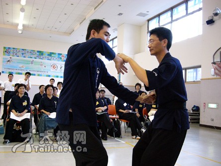 推手练习 推手练习主要练什么?核心目的是练不丢不顶,沾连粘随。 什么叫“不顶”呢? 对方手过来触着你的身体,他进多少你退多少.不差分毫,这算不算不顶?暂且不问谁能够做得到.即使有人能够做到.那么,他一直逼着你,你退到何时是推手所讲的不顶.显然不是毫无抵触的你进我退,而是在双方接触力互顶的基础上,彼推我走。推习中,甲用力,乙亦要用力.且点紧、贴实两力针锋相对造成对顶,尔后根据双方功力互相配合,一方身体如弹簧在伸长.另一方身体如弹簧被压缩,一方推着另一方走。两力相顶时,双方的身体犹如两根连在一起的弹簧均受对顶力的作用.在力的挤压下朝同一方向运动,力的作用点不能有哪怕是瞬间的停顿不动,如果力的作用点出现呆死不动,这是真顶了,是错误的。如果没有双方的配合及点紧、贴实两力对顶,充其量是表面形式上的一方收缩另一方跟随,不会有双方身体如弹簧在受力状态下的压缩、伸长,是空空的你进我走,没有力的对话,没有矛盾力。不丢不顶是力学行为,是一对矛盾力,是极富弹性的过程。 什么叫“不丢”呢? 对方不管你顾自走,比如手无目的的乱划乱舞.那么使出浑身解数也无法连着他的手随着他的手步调一致的“不丢”。假如有谁能够做到,这样的不丢又有何意义呢?在日常生活中.大人牵着小孩走,我们说“不丢”。小孩紧紧地跟随在大人身后,我们也会说“不丢”。然而,前者之不丢与后者之不丢在力学上是不同的,前者有力的相互作用.后者没有。推手练习中的不丢与前者有点类似.但不尽相同。大人牵小孩是靠手拉发生力的行为.推手练习中的不丢,不能用手抓、拉。推手练习中的不丢是怎样形成的呢?答案已经有了,“不顶”做到了.我推着你走做到了,“不丢”已在其中。不丢不顶做到了.沾连粘随也已在其中。 不丢不顶这对矛盾力可大可小,可大到竭尽全力.可小到微乎其微,唯不可不用力,因为不用力就谈不上矛盾力,没有矛盾力就表现不出弹性。当接触力微乎其微时,肩臂却酸不可耐,呼吸跟不上,有力无气,这是常说的”气推”。劲推和气推实质是一样的,都是力的行为,只是劲推粗一些,气推细一些,细到牵一发而动全身,全身动起来呼吸就跟不上了。除了推手有不丢不顶这档事儿外.有个游戏也有点不丢不顶的味儿。两人一组,背对背.后背之间夹一个大气球,两人从这一头跑到那一头,气球不能跑掉也不能夹爆.看谁跑得快。跑动中.如果两人的顶力小了.气球就飞走了,这是犯丢。如果顶力过大,气球压爆了,这是犯顶。从这个游戏我们也可以看出,要不丢不顶,先要互顶.关键在这个互顶的力度要恰到好处。没有互顶就没有不丢不顶。不互顶在先,何来沾、粘行为公园里常见有偏离不丢不顶本意的推手练习。如,双方长年累月画圈.达到十分默契的程度,你来我去.你退我进,天衣无缝不差分毫.习惯成自然.毫不着力。这样的不丢不顶除了健身几乎没有技击意义。毫不着力的推手是假推,是背离不丢不顶本意的,这不是“用意不用力“的本来面目。 不丢不顶是双方配合的产物。背夹气球的游戏.任何一方不配合.还有不丢不顶吗?一个太极顶级高手和一个不会武功的人推手,能推出不丢不顶吗?推手比赛只求战胜,不讲配合,还能看到不丢不顶吗?推手表演 推手表演情景总是令人叹为观止,是真的还是假的?外行者、初学者、功夫一般者总免不了有类似的疑问。 表演的目的之一是尽显该拳术的特色。在进行太极拳推手表演时,尽显沾连粘随不丢不顶,用劲似松非松将展未展,双方丝丝入扣.二人似一人合二为一;尽显挨何处何处发.挥之即去.招之即来,无招无式;尽显招式.捏指、反关节、锁腿,牵一发而动全身:有尽显功力,触之即发,如弹丸弹出丈外 这是真的还是假的?亦真亦假。 说真就是真。如果换一个不会太极拳的上来,他不具备懂劲这个条件,接不上接不准老师的来劲,就演练不出劲打劲令人叹为观止的情景。说假就是假。因为换一个不会太极拳的、不熟悉的上来,他散乱不整.不成团,无法与你配合接你的劲.同样演练不出精彩的劲打劲的效果。表演成功的前提是双方配合,只有配合才能淋漓尽致地展示出太极拳推手应有的东西,才能尽显该拳术的特色。 表演情景与平时练习息息相关.表演反映出平时推手练习的风格特点。表演情景不同,表明推手风格不同。从表演情景可以推断出其人推手用于实战的实用性。表演都是夸张的,都是在配合默契的条件下进行的,都是老师比学生厉害。实战不是这个样子.如果是这个样子,太极拳就会在当今的散手擂台赛上战无不胜,擂台上就尽是耄耋的身影了。表演不是实战,当不了真。 [page] 推手比赛 现行的所谓推手比赛,空有虚名,其实质是断手比赛。推手、断手、散手三者要区分开来.要科学定义。再在这个基础上把推手比赛更名为断手比赛.比赛规则作彻底性改变。比如,为了减少顶牛,增加观赏性.增加实用性,可以把比赛的圈子放大,大到选手几无出圈之虑。摔跤、柔道为什么少顶牛?因为顶牛没有用,出圈不得分。为了增加技术在比赛里的比重,也要把圈子放大。圈子大,周旋余地大,技术发挥空间大。力大与力小者对决,场地越狭窄对力小者越不利。圈子大了,把人们往技术方向引。增加击点得分比重,把人们从“推”字上解放出来,引向击打,导向实用。当然比赛的圈子小了并不是一无是处,圈子
