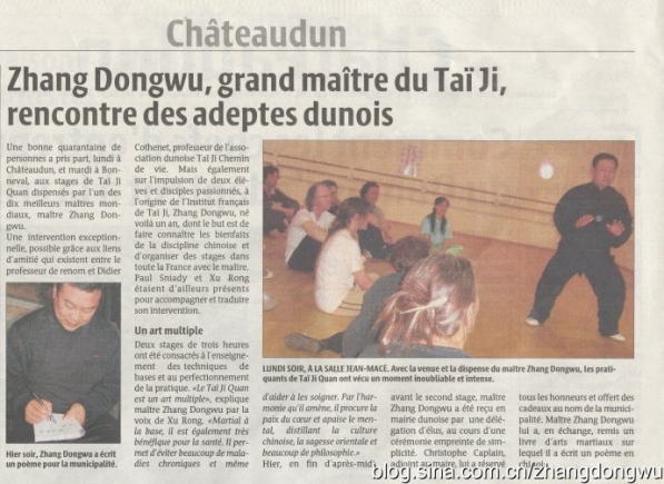 张东武老师的巡法讲学得到了各地政府及媒体的多方关注。法国中部城市Chateautun 和 南部普罗旺斯地区的Meyrargues 市的市长亲自对张东武老师一行的到来表示热烈的欢迎和诚挚地感谢。十几家报社对张东武老师进行了专访,对这次巡法讲学进行报道。