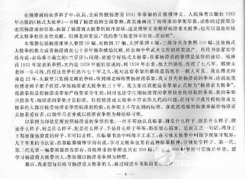 《杨澄甫拳照:1931年拳架及其使用法(第2版)》包含杨澄甫的拳架照59幅,对敌图37幅。大捋4幅,共100幅图,取自杨澄甫1931年出版的《太极拳使用法》一书。对敌图清楚地给出了拳架的使用法。编制中,每一幅对敌图都配上相应的拳架,这虽然只有一个简单的编排,却把拳架及其使用法连成了一体。解决了杨式太极拳的用法这个人们多年来一直想了解而又没有解决的大问题。仔细阅读、认真临摹,就可以帮助你知其然又知其所以然。这是杨式 ...