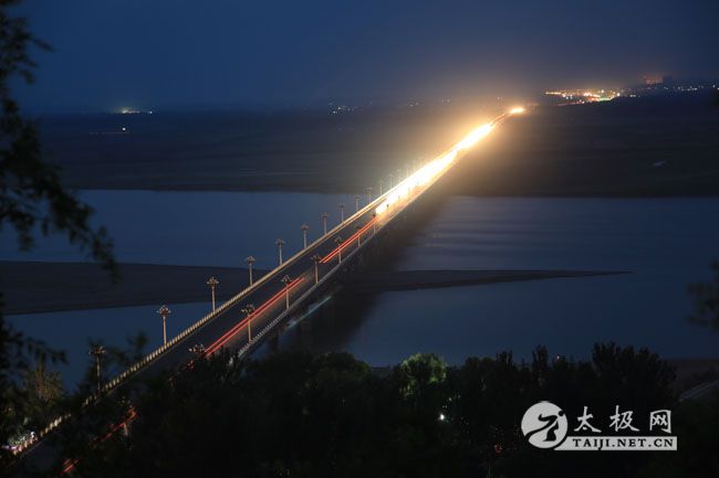 昨天郑州陈小旺太极拳养生会馆的学员到陈家沟旅游,顺便陪他们到河洛交汇游览,送他们走后,在邙山顶上拍摄的黄河夜景。