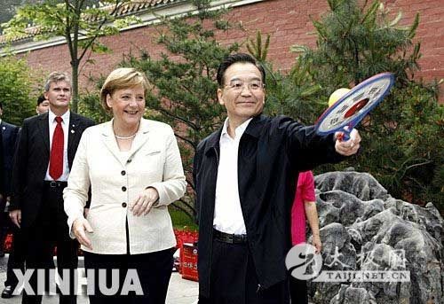 2006年5月22日,温家宝在向德国总理默克尔介绍太极柔力球