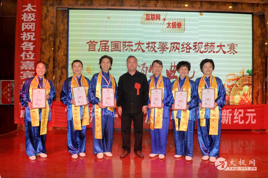 首届国际太极拳网络视频大赛获奖选手和颁奖嘉宾合影留念