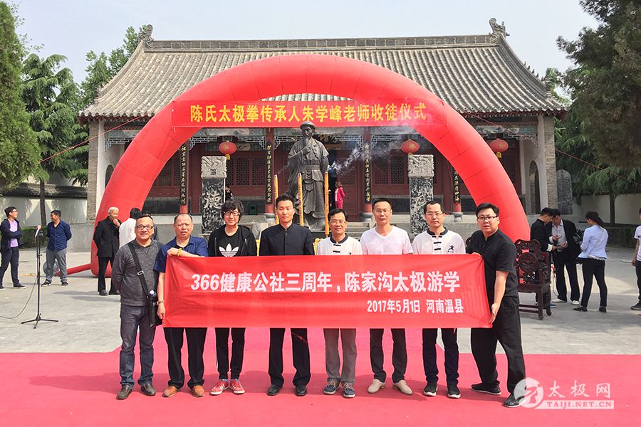 (太极网报道)5月1日,陈式太极拳优秀传承人朱学峰收徒仪式于太极拳发源地温县陈家沟太极拳祖祠举行。本次拜入朱学峰老师门下的弟子有杨国锋、崔全、王文秀、张铂林、刘超、李仕均、黄保军、宋歌、许鉴本、殷培松、杨益桂、郑文全、谢庆波、翁晓宏、凌家会、杨润华、吴琦玉、李丰奇、蔡彦、张可妮、王伟、江东珠、冯立胜、张世焕、胡荣华、张世明、陈佳恒、肖剑、戴达民、朱卫、沈健、朱建立、李喜芳、鲁泽霖、魏建泳、蔡秀峰 ...