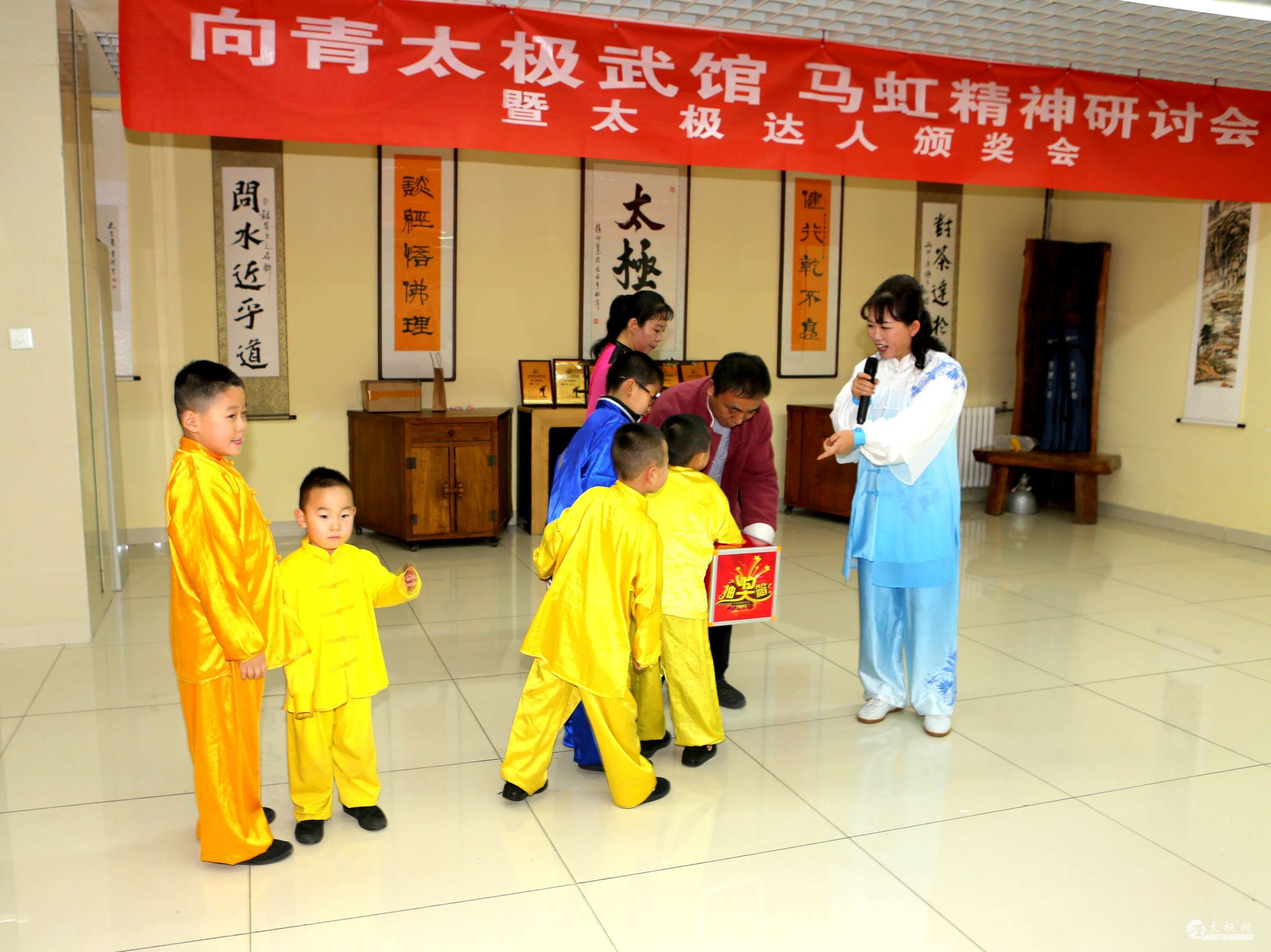 李爱花、王芳、岳晓敏、王宇红、赵俊娥,奖品为精美抱枕。由副会长曾凯文、白福平为四等奖获得者颁奖。一等奖吴月琴(奖品为精美平板电脑)、二等奖孙建辉(奖品为九阳电烤箱)、三等奖段改兰(奖品为酸奶机)上台领奖,由常向青师父、雎志平老师为获奖者颁奖。 学员孙建辉发表获奖感言 至此,向青太极武馆2018首届马虹精神研讨会暨太极达人颁奖会圆满礼成!群友火凤凰为本次活动题诗一首: 太极陈氏坐中堂