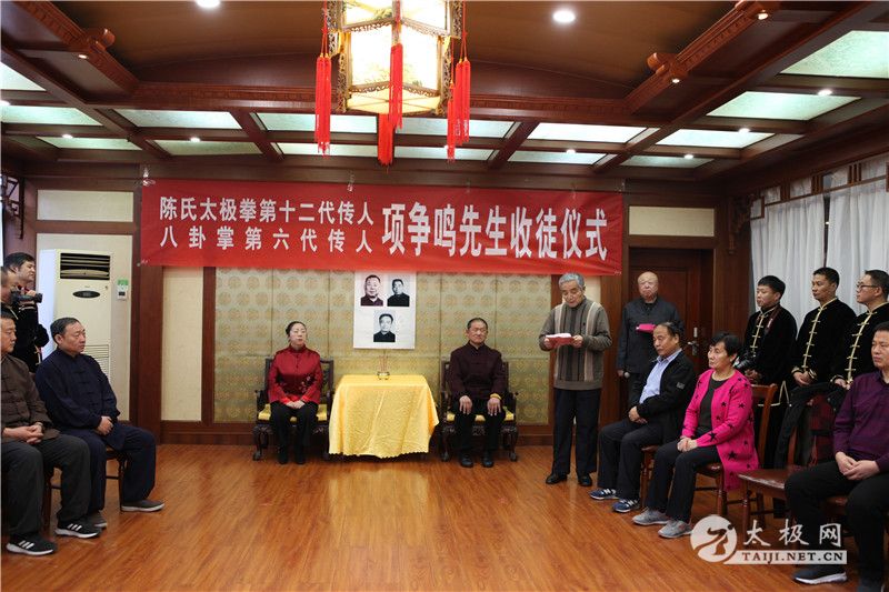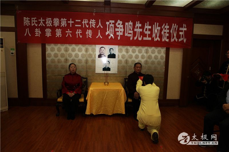仪式开始,全体成员首先向先祖行鞠躬礼,项争鸣先生向先祖上香、行叩拜礼以缅怀先祖。新入门弟子向师父行礼、递交拜师帖,师父向弟子回贴。