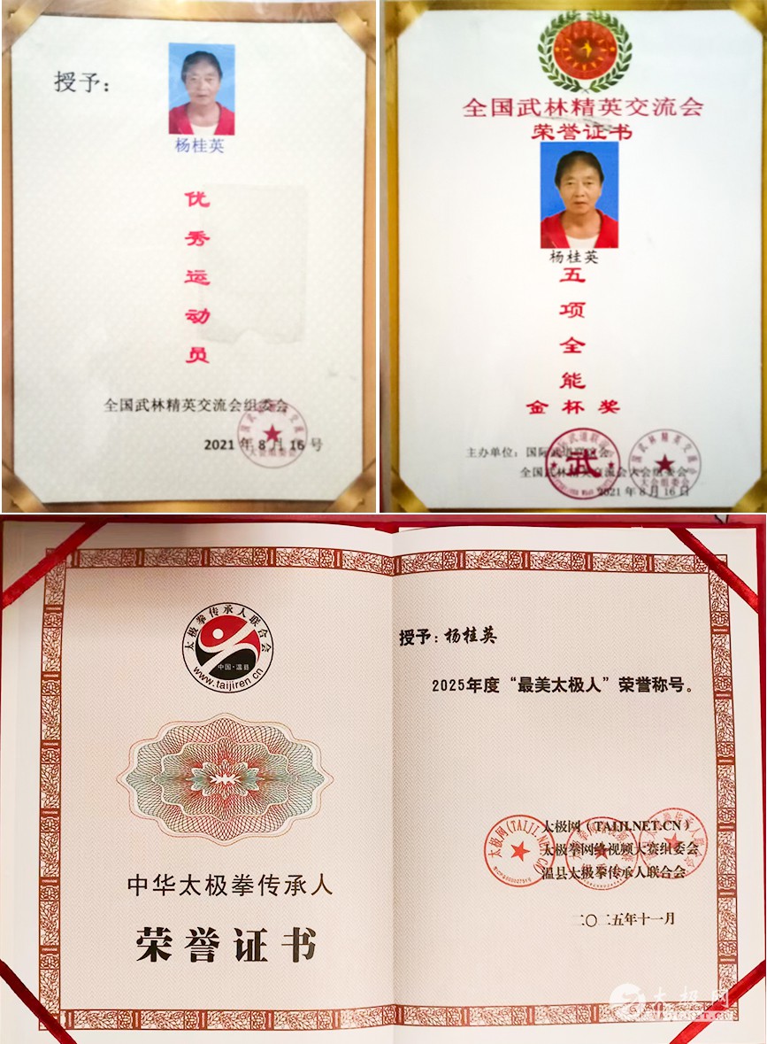 “看到学员们通过太极拳改善身体健康,提升生活品质,是我最大的满足。”杨桂英表示。她的教学深受群众好评,所带领的团队在各个赛事中多次取得前三名的优异成绩。