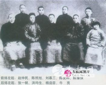 前左起赵仲民、陈照旭、刘慕三、陈发科、陈玉霞,后左起,张一帆、洪均生、杨益臣、王亮