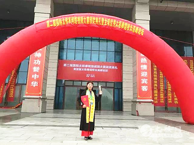 汾州府,物华天宝,人杰地灵,不仅有享誉世界的“汾州核桃”、“汾酒”、“竹叶青”,也孕育出无数历代先贤和各界优秀人才。而近年来,“太极拳”这一中华传统武术也逐渐的在汾州发展开来,越来越多的汾州人加入了习练太极拳的行列中来,通过习练太极拳获得健康,获得快乐。我们故事的主人公郭建新老师正是来自汾州,她通过自己的努力在这块肥沃的土地上默默传播爱心,静静播撒健康幸福的之火。2016年10月23日,第二届国际太极拳网络视频大赛在太极拳发源地温县陈家沟隆重举行,我们有幸邀请到郭老师接受太极网的专访。 郭建新在颁奖典礼现场 郭建新,1959年生于山西汾阳。直到97年才开始接触太极拳,接受过高等教育的郭建新,对于太极拳所蕴含的哲学道理深有所感,尤其是太极拳讲求的动静结合,阴阳和合的拳理深深的吸引了她。一开始习练,郭建新便不可自拔的爱上了太极拳,一心一意的习练,太极拳水平不断提升,对于太极拳文化的理解也日益增加。日复一日的习练并没有让郭建新产生丝毫的厌倦,反而愈发的坚定了其对太极拳的热爱。 2010年,郭建新结识了杨氏太极拳第五代传人宋斌老师。幸运的是,宋斌老师对她的拳技十分认可,郭建新也得以跟随宋斌老师学习杨氏太极拳,她的太极人生由此进入了新的篇章。随后,郭建新顺利加入了杨澄甫太极斌惠团队,在这个讲德、修法、谈友情的团队中,她和诸多拳友们一起习练太极拳,不断交流切磋,讲正义,传播正能量,做奉献,献爱心,学拳、教拳、渡人,在这样的环境中,郭建新的太极拳水平迅速提高,对于太极拳文化的理解有了质的改变。由自己练太极变成与大家共同交流切磋太极拳,再上升到推广和传播太极拳,通过自己的努力影响更多的人,让更多的人加入习练太极拳的队伍中来,在传播太极拳的过程中郭建新也在不断的成长,担任了广州杨澄甫太极拳中心-斌惠杨氏太极俱乐部-汾阳斌儒堂主教练,太极疗教练等职,这既是对她为推广太极拳所作贡献的贡献,更是推动她继续前行的动力。 2014年,郭建新随宋斌老师南下广州推广传授杨氏太极拳,同时,参加了“如是中庸”平台学习,学习了儒、释、道传统文化及禅修打坐,还学习了南怀瑾老师的生命与科学,学习了先人圣贤文化,进一步提高了她对圣贤文化的认知懂得了佛学智慧的结晶,懂得了禅修打坐也是一种功法,长期打坐可让人心归一处,打坐让人入静一定一安一虑一慧。郭建新将学习所得与自身的太极拳文化相结合,在太极拳习练过程中不断加以印证,颇有助益。 通过圣贤文化和太极拳内涵的相辅相成的结合,郭建新更是将这种理解应用在了实际的推广中,懂得了人体生病的起因,“命由己造,相由心生”的科学道理,逐渐摸索出一套太极治疗康复教学体系。2016年8月接收了一位食道疾病术后学员,郭建新对他进行太极疗治疗康复教学。结合该学员的实际情况制定了符合他习练的计划和课程。在教他习练太极拳的同时,辅以教禅修打坐练习。通过动静相合的练习,使其内外兼修,先从心理上让其能够正确面对术后康复,培养他乐观积极的心态,然后辅以太极禅修练习,慢慢循序渐进,逐步加量训练,效果甚好。这位学员在接受康复治疗的过程中,思想乐观主动配合学练,治疗一段时间后面色红润,精神抖擞,精力充沛,身体也处在快速恢复中,充分体现了禅修打坐和太极拳练习对亚健康及术后患者有很好的辅助疗效。 提及自己的授业恩师,郭建新心中的感激和崇敬溢于言表。她提到,曾多次跟随宋斌先生拜访探望杨氏太极第四代掌门人杨振铎尊师,参加了杨氏太极拳第五代掌门人杨军先生体用培训,得到尊师和大师的亲自指导,理论和拳技不断积累增进。说起对于自己的这位恩师的了解,郭建新说到,宋斌老师三十余年以来,先学拳、练拳,随后又教拳、育人,是一位坚定不移的杨氏太极拳传播者,为推广杨氏太极拳作出了突出的贡献。他也是一位机智多谋、有魄力、有胆识、能吃苦、肯奉献、无私无畏无我者。跟随宋斌老师身边多年,感人的事数不胜数,他刚正不阿的人品、雷厉风行的作风让郭建新无比敬佩,跟随他学练不仅感受到练太极拳给身体带来的好处,更多教会她怎样去做人,引领她走上一条正确的修行之路。 2015年10月发生的一件事让郭建新至今难忘。那时候,她在广州跟随老师学习,初秋的广州依然骄阳酷暑,湿热难耐,浑身冒汗,可是老师却义无反顾的奔波在广州和深圳两地授课,一天从早到晚起早搭黑十几个小时的太极课依然乐此不彼,在华南理工大集体晨练课后边赶路边吃早点赶去流花湖公园上课,午饭后顾不上休息还要继续赶往深圳给公司老总上VIP课,尔后还要去几所大学上教职员工课,晚上8点了还得马不停蹄赶赴另一所大学给大学生上太极课,全天课程结束后已是晚上10点多,返回广州已然深夜12点了,跟着陪练的郭建新都觉得疲惫不堪总想偷懒,可是宋斌老师每一堂课都是认真细致的讲,规范标准的示范,孜孜不倦的手把手教,针对不同的人群运用不同的教学方法,做到了每周课程早计划、早安排。看着他被汗水湿透了的背影,听着他抑扬顿挫的讲课和不停的示范,心中不由自主的疼惜爱戴宋斌老师。他为了传播杨氏太极实在是太辛苦了!在他身上有学不尽取不完得人生精华。 在不断学习和练功的同时,郭建新在汾阳市和周边县市以及广州、上海等地