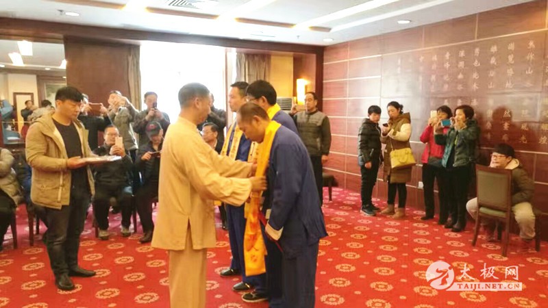 (太极网焦作报道)2016年11月26日,陈式太极拳第10带传人,当代太极拳名家郑太臣收徒仪式在焦作山阳建国饭店隆重举行。来自山东沂源的张怀军,淄博的段美光,荷泽的王旭望三位弟子正式拜入郑太臣老师门下。焦作市武协主席张志远,市体育局太极拳科科长范小波,荷泽市体育局副局长房惠民以及太极网创始人、温县太极拳传承人联合会主席刘洪奇等到场祝贺。陈氏太极拳第八代传人,有“铁捋”之称的太极拳一代宗师王雁之孙王长江作为本次师徒仪式的鉴证人出席活动。 刘洪奇主持收徒仪式,郑太臣老师带领三位弟子向太极拳始祖及历代宗师敬香,行跪拜礼,仪式太极拳代代传承,薪火不断,同时也是告诫新入门弟子要礼敬先师,尊敬师门前辈,时刻保持一颗敬畏心,潜心习练太极拳,成为一名合格的太极拳传承人! 王长江题写拜师贴 随后,弟子依次向师父敬献拜师茶,递交拜师贴,行拜师礼。郑太臣亲自为弟子披挂太极拳传承人绶带,并向弟子训话,他告诫三位弟子,要恪守门规戒律,遵从师门教导,认真习练太极拳,领悟太极拳文化,不与人争强斗狠,不议论其他流派短长,做一名对纯粹的太极人,为太极拳的传播和推广贡献自己的力量。 弟子们也表示,定会铭记师父教诲,练好太极拳,做好太极人,为太极拳的传播和推广贡献自己的全部力量。郑太臣老师向赶来参加拜师仪式的领导和嘉宾表示感谢,同时他表示,自己将会继续全力以赴教好弟子,将他们培养成为传播太极拳的坚实力量,为太极拳的推广做出自己的贡献! 责任编辑:太极网陈超 |