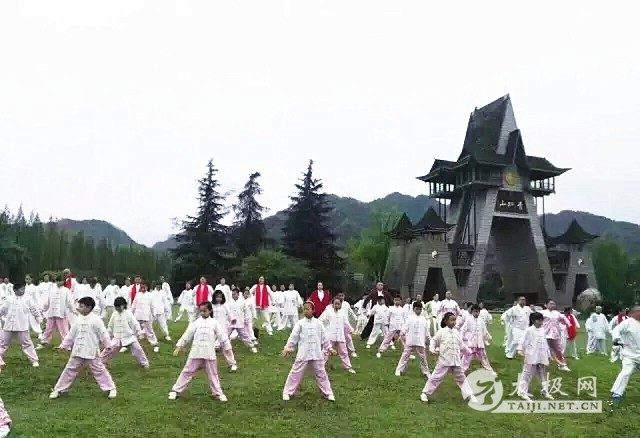 与此同时,位于都江堰青城山的150人活动现场,直播已经进行。青城小学的小朋友们身着统一服装,冰雪可爱,稚嫩身影打出不甚成熟却诚意满满的太极拳,让周围围观的市民一片叫好。“我们为你加油”,声音满满充满激情,在黄龙溪,巴蜀武术养生学院200名太极爱好者,与雪山、青城山联动,共舞太极,盛况空前。