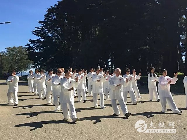在中俄界江碑旁的青城太极北方养生基地,黑龙江绥滨县武协王国利主席率领150名绥滨县太极爱好者,共舞太极!同时,成都、上海、北京、深圳、武汉、西安、广州、三亚的青城太极弟子也纷纷响应。荷兰精武体育会赵秋荣会长、芬兰武术协会教练代表 Oskari Jakonen、柬埔寨中华太极拳养生协会会长高文胜、老挝中国经贸促进会会长黄天豪等人纷纷组织青城太极爱好者参与支持,在所在地区地标同步舞起太极。
