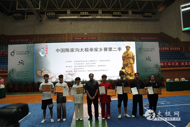 6月25日,首届中国·陈家沟太极拳家乡赛第二分季赛圆满落幕。颁奖仪式在陈家沟太极拳国际交流中心隆重举行。经过两天的全力拼搏和激烈角逐,各个参赛选手精彩绝伦的太极功夫让人印象深刻、交口称赞。运动员赛场上的英姿飒爽、勇往直前,赛出了风采,赛出了优异的成绩!各项比赛项目奖牌各归其主。 出席颁奖仪式的领导和嘉宾有:河南省武术运动管理中心社会武术科科长李子峰、温县县委副县长李美玲、温县体育局局长宋明军,温县县委宣传部副部长、太极拳武术文化管理中心主任王海昌、太极拳大师朱天才等。 颁奖仪式由李子峰主持,总裁判长郭文革宣布比赛成绩。随后王海昌先生公布武德风尚奖运动队和优秀裁判员名单。李美玲、宋明军、朱天才分别向优秀代表们、优秀裁判员以及优秀运动队进行颁奖,并向优秀代表们表示了祝贺! 李子峰主持颁奖仪式 郭文革宣布运动员比赛成绩 李美玲为获奖运动员颁奖 李美玲与获奖运动员合影 宋明军为优秀裁判员颁奖 宋明军与获奖裁判员合影 朱天才为获奖运动员颁奖 朱天才与获奖运动员合影 裁判员合影 温县作为太极拳发源地,举办这次以家乡为主题的太极拳赛事,也是广大太极拳拳师的强烈呼吁,更是焦作市“一赛一节”活动正式举办之前温县各项筹备工作的一次预热和演练,进一步增强太极拳发源地的凝聚力和向心力,强化“家乡”对太极拳文化的共同认知和传承。 责任编辑:太极网安安 |