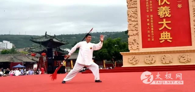 6月23日,2017年伏羲大典暨第28届中国天水伏羲文化旅游节的重要体育赛事活动--“问道伏羲”羲皇故里伏羲太极拳大型展演活动暨颁奖典礼于天水伏羲广场隆重举行。来自全市的14个代表队,约370名太极拳专业选手和爱好者,以及天水市伏羲中学的500名学生共同参加了表演。参赛选手年龄最大的为85岁,来自天水老年大学全剑队。年龄最小的6岁,来自麦积羲皇太极养生馆。