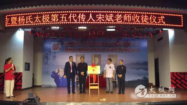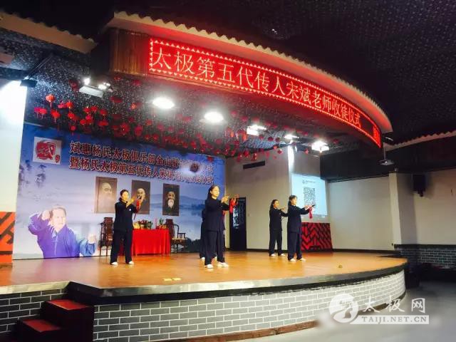 2017年8月13日,斌惠杨氏太极俱乐部金山驿站揭牌暨杨氏太极第五代传人宋斌老师收徒仪式于上海市金山区荣欣书院隆重举行。 一曲激昂的太极锣鼓,划破了书院的静谧,响彻长空;舞者的热情也感染了周遭的空气,热浪更热。 荣欣书院院长胡海荣先生致辞:传统文化的传承和发展是非常重要的,书院作为这一重任的承载,有着不可磨灭的作用。而传统杨氏太极的加入,更是为书院增添了别样的风采。这是文武之道,一张一弛的结合。此外,传统武术的“六进”不仅可以将这些传统文化传播的更广,更是可以将身体的健康、心灵的自在带给更多的人,达到强身健体、身心兼修的目的,造福更多的人。 在中国策划研究院董事局主席、智库中国总裁陈国庆院长,山西省汾阳市文化局局长强玉山,杨氏太极第五代传人宋斌老师的共同见证下,斌惠杨氏太极俱乐部·金山驿站正式揭牌成立。意味着传统杨氏太极正式入住荣欣书院,这一传统文化将传播的更广,造福更多的人。 揭牌仪式 仪式间歇,更有精彩绝伦的节目助兴,将活动气氛掀至高潮。 振奋人心的少儿武术基本功展示,向来宾展示了我们斌惠少儿扎实的武术功底,每一个踢腿都是那么铿锵有力,每一次冲拳都是那么飒飒生风,每一个高难度的动作也都赢得了现场的热烈掌声。 还有姿势舒展、优美大方的十式太极功展示;再看拳友们舞刀成风,持剑起舞,一招一式尽显内涵风采。 广州劲德武术国学馆的吴泽南、吴泽敏两位教练带来的武术展演更是看的观众目不暇接,展现了习武人的风姿。 由周小云、张海洪两位老师带来的散手对练表演则进一步将杨氏太极的内涵展现了出来。你来我往,你推我化,招招精进。攻防间尽是高手风采。 健身气功八段锦 杨氏太极刀 杨氏太极剑 助兴节目后,便是我们此次活动的重头戏——杨氏太极第五代传人宋斌老师收徒仪式。 在中国策划研究院董事局主席、智库中国总裁陈国庆院长,松江区原体育局副局长倪平远,吴式太极印诚门第三代传人王洪鄂老师的共同见证下,此次共有26名传承弟子得以拜入宋斌老师门下,继续跟随师父学习,提高技艺,承传太极。 他们当中有年近古稀但貌若不惑的老拳师;有正当青春、追求进步的大好青年;有热爱多年、精益求进的老学员;也有初识太极、热忱追逐的新新人。 他们来自五湖四海,此时此刻,因着共同的爱好,朝着共同的目标,有缘欢聚一堂,成为了太极一家人。 拜师礼庄重而严肃,有条不紊,全场静默认真,共同见证这一神圣而辉煌的时刻。 仪式完毕,由大师姐周小云带着弟子们共同宣誓:尊师重道,认真学习,提高技艺,传承太极,造福人类。 师父宋斌也表示了对所有新弟子加入的欢迎和感谢,号召大家共同努力,共同进步。 从天南海北,到欢聚一堂,是太极,给了我们这个缘分。 从素昧平生,到亲如家人,是太极,给了我们这份情感。 传承太极,承载的是技艺,传播的是文化,培养的是武德,收获的是人生。 愿这33位弟子,紧紧跟随师父,提高技艺,承传太极。共建和谐太极大家庭。