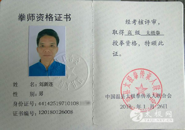 刘新连,自幼喜爱武术,2015 年跟随孟凡老师学习陈氏太极拳、春秋大刀。2016年正式拜孟凡为师,系统学习太极拳、械、推手。