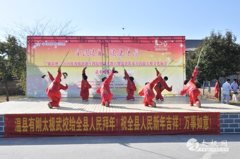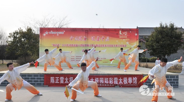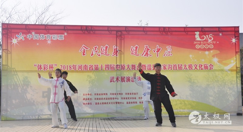 (太极网报道)全民健身,健康中原——“体彩杯”2018年河南省第十四届中原大舞台暨温县陈家沟首届太极文化庙会武术展演活动于2018年2月21日(农历正月初六)至3月3日(农历正月十六)在陈家沟景区祖祠演艺场隆重举行。 活动持续期间来自温县武校的多支传统武术团队轮番上阵,每天下午3:00—5:00,持续了11天。为广大来宾展现了博大精深和独特魅力的一场太极拳盛宴。中原大舞台武术展演系列活动从正月初六至今日,已有陈家沟国际太极院、张保忠太极武院、陈家沟太极拳功夫学校、有刚太极武校、郑彩霞太极拳馆、陈正雷拳馆温县分馆等武校相继上演了一场场精彩纷呈的武术展演和文化展示。包括集体表演、太极拳套路、器械、推手、观众互动等。 |
