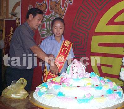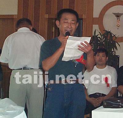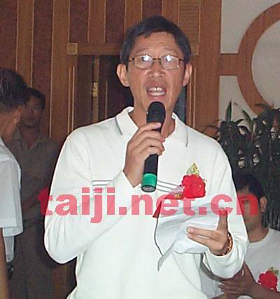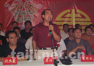 今天中午,温县王西安拳法研究会成立仪式在温县银苑大酒店举行,焦作市政协和温县体育局、陈家沟村委会的领导以及来自全国各地近300余名太极拳爱好者欢聚一堂,热烈庆祝太极大师王西安先生申办的“温县王西安拳法研究会”成立。今天刚好是王西安先生的六十一寿诞之日,同时应刚刚结束的首届王西安拳法研究会太极拳提高班部分学员要求,30余名太极拳爱好者进行拜师入门仪式,太极大师王西安先生可谓是“三喜临门”。大家在欢庆宴会上共同举杯祝愿:太极为媒,健康为本,造福全人类!